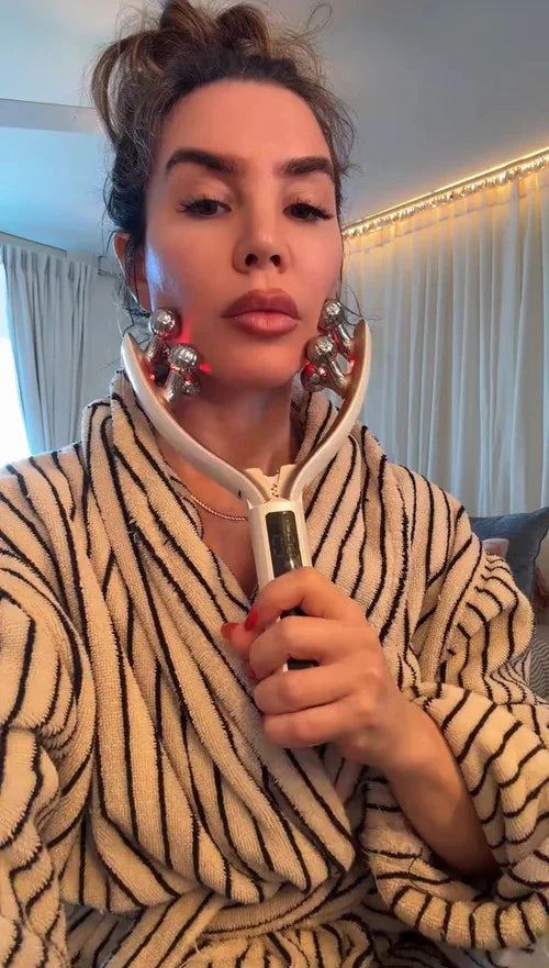 Facial Sculpt massager combines EMS microcurrent, gentle warmth, and precision rolling massage to help relax facial tension, support circulation, and improve the appearance of firmness, all in just 10 minutes a day. It works beneath the surface, not just on top of the skin.